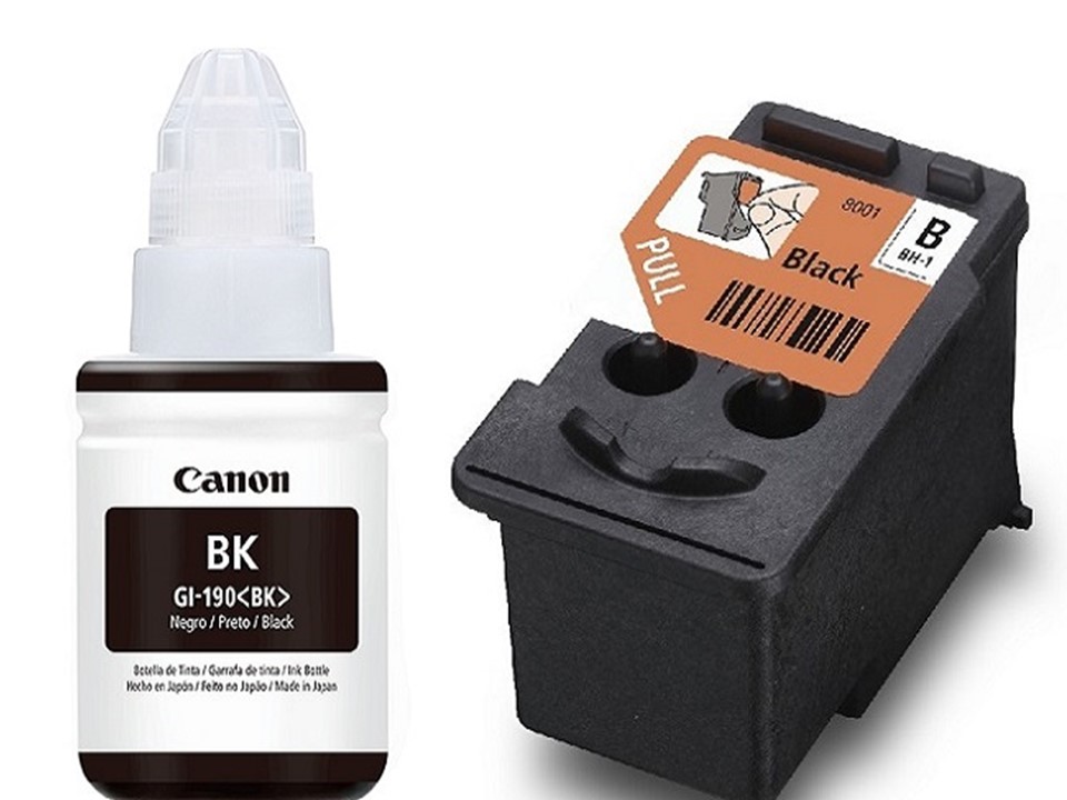 Cartucho Canon de tinta negra + Botella de tinta negra