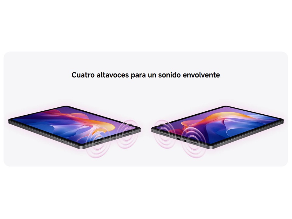 Tamaño: 11″, relación de aspecto de 16:10Resolución: 2560 x 1600, 274 pppTasa de refresco: hasta 90 HzFrecuencia de muestreo táctil: hasta 360 Hz 240 Hz (con bolígrafo)Brillo: 500 nits (typ); 600 nits (modo de exteriores)Certificación de luz azul reducida (solución de software) de TÜV Rheinland Certificación de tecnología sin parpadeos de TÜV Rheinland Certificación de compatibilidad con ritmos circadianos de TÜV Rheinland1070 millones de colores | Modo lectura | Tecnología táctil con agua | Superresolución de 10x*El tamaño de la pantalla de la Redmi Pad 2 es de unas 11 pulgadas cuando se mide en diagonal. El área de visualización es más pequeña debido a las esquinas curvadas. Las medidas entre productos individuales pueden variar. *La frecuencia de actualización se puede ajustar hasta 90 Hz para aplicaciones y juegos compatibles. Consulta la experiencia real.